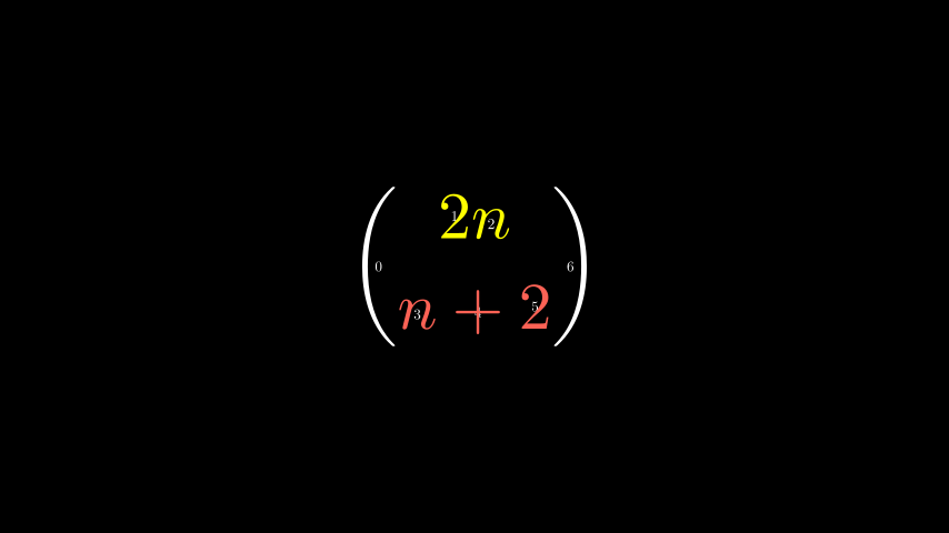 text = MathTex(r"\binom{2n}{n+2}", font_size=96)