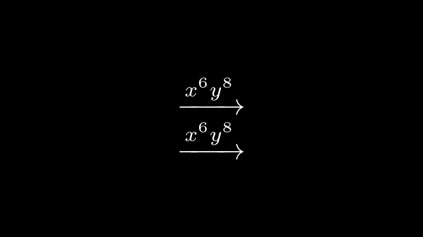 rtarrow1 = Tex(r"$\xrightarrow{x^6y^8}$", font_size=96)