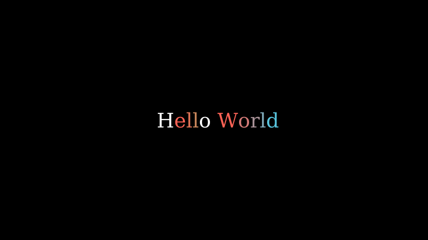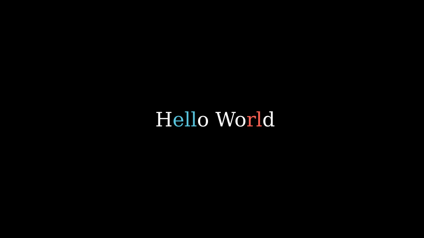 t2cindices = Text('Hello', t2c={'[1:-1]': BLUE}).move_to(LEFT)